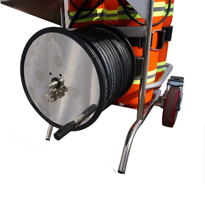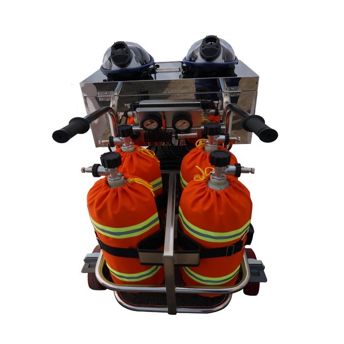 车载立式移动供气源是对密闭空间、缺氧、狭窄有限通道及有毒有害气体环境下的工作人员提供长距离的空气传送使其在没有负重的情况下得到呼吸保护,具有操作简单、行动灵活、工作时间长的优势。